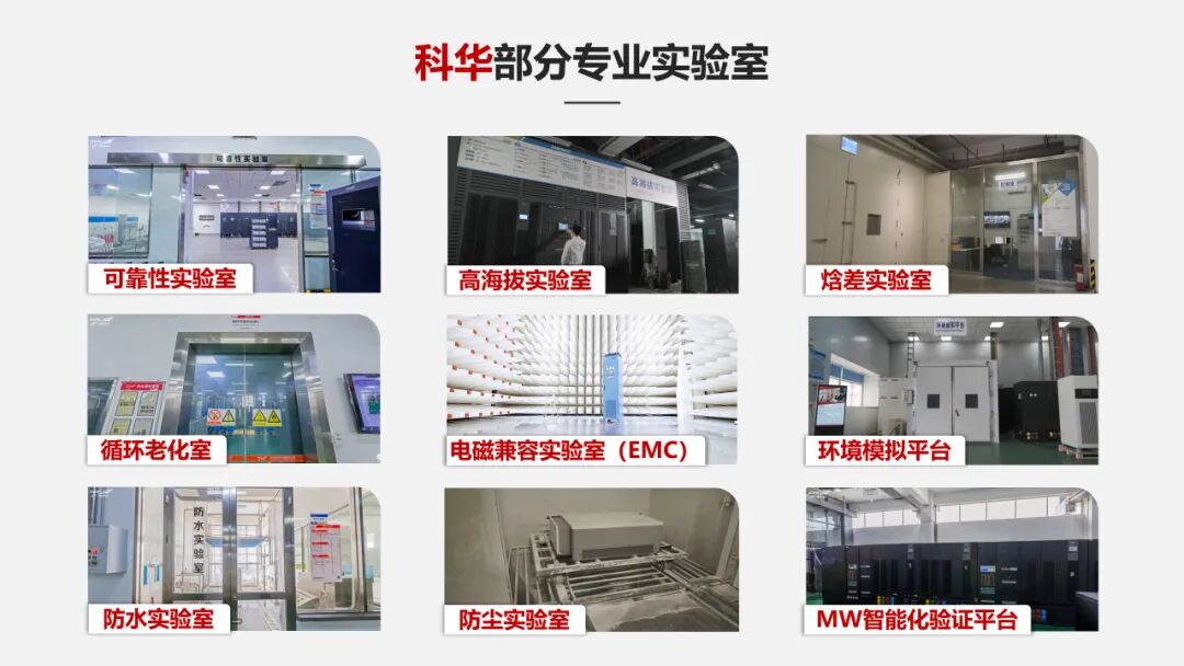 在完成器件与结构层面的优化后,为了充分检验产品的可靠性,科华模拟真实运行工况,对产品进行了一系列“实战演练”。如元器件的加速老化筛选试验、粉尘污染&盐雾腐蚀试验、短路冲击耐受能力测试、负载安全响应测试以及抵御外界辐射干扰的EMC试验等,确保产品在任何极端环境下都能稳定在线。